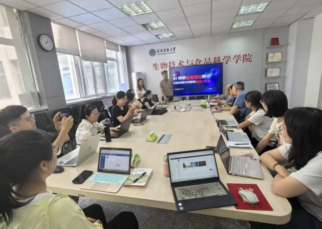 在本次工作坊活动中,雨课堂培训专家以“四步建课法”为核心,展开全流程实操演示,对如何快速生成课程框架、如何构建专属知识库整合教学资源、如何应用AI工作台中的智能讲伴等功能满足不同学科教学需求进行了详细的实操讲解。超星平台培训专家介绍了“AI赋能智慧课程建设与教学模式创新六步法”,组织老师们现场开展了配置课程AI助教、搭建课程资源库等课程建设的实操训练,帮助教师掌握从理论到实践的全流程智慧课程建设方法。现场参与活动的老师们也就课程知识图谱构建、AI应用设置、指令库设计等具体的建课细节与培训专家开展了深入的交流。