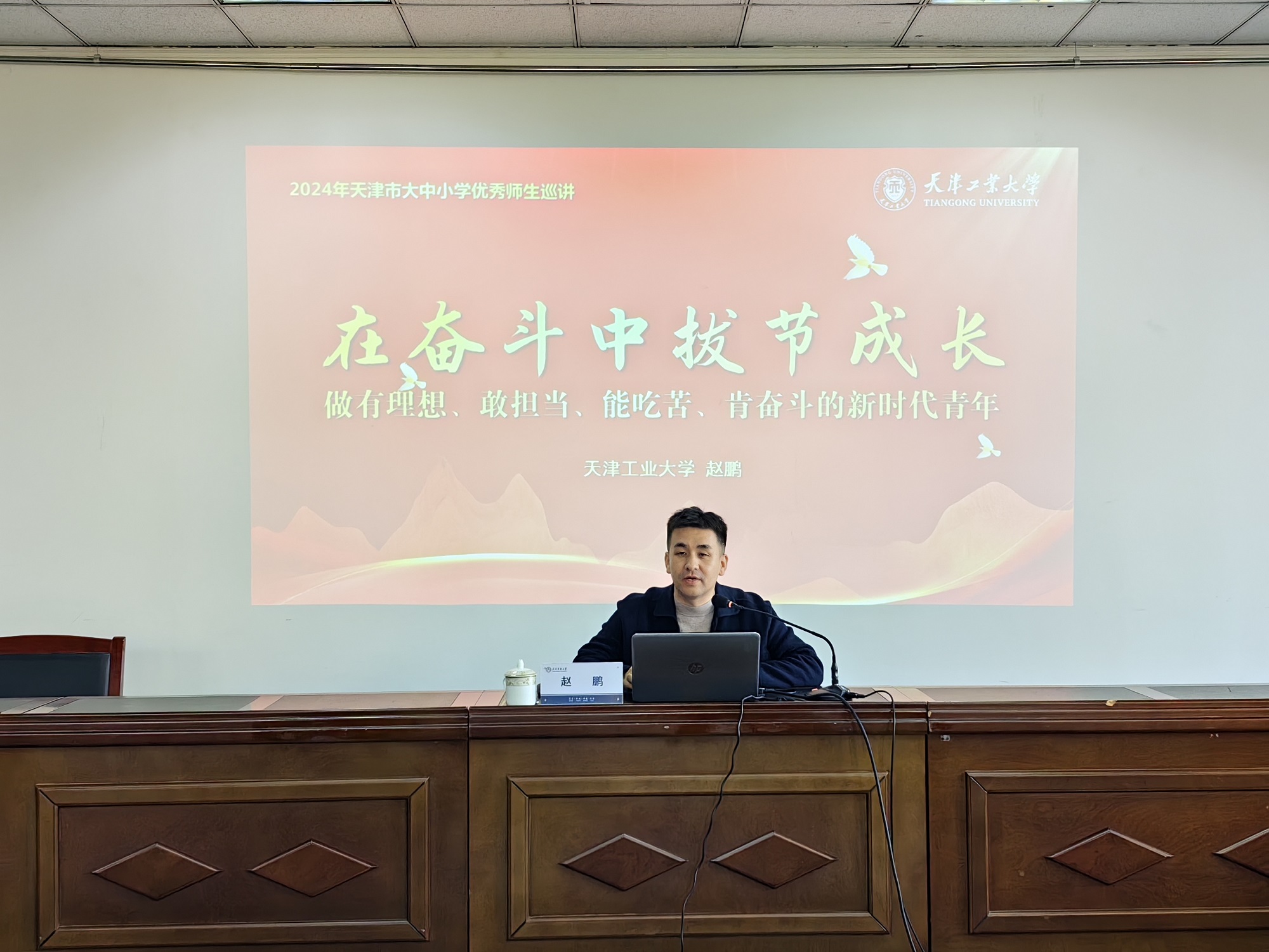 11月6日下午,党委学工部举办“牢记嘱托启新程 学思践悟再出发”大中小学优秀师生巡讲活动。活动邀请天津市普通高校优秀辅导员、天津工业大学药学院团委书记赵鹏老师以及天津市大学生年度人物张宇晨同学面向我校师生开展宣讲。党委学工部相关老师,各学院辅导员、学生代表百余人参加巡讲。