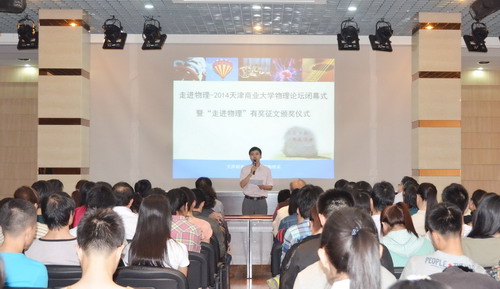 “走进物理—— 2014 天津商业大学物理论坛”立足物理专业,服务全校师生,面向全市高校。在为期一个月的时间内,举办了大量的系列活动,其中既有针对物理专业学生的“我的‘物理梦’——师生交流活动”,又有面向全校学生的“‘走进物理’有奖征文活动”;既有针对理工科学生的应用物理学术报告,又有面向文科专业学生的“文科生专属的‘私人定制’——物理实验开放课程”;既有适合校内学生参与的“‘零距离’物理科技馆——物理演示实验活动”,又有面向全市高校的“天津市高校实验教学示范中心建设研讨会”。本次论坛活动内容丰富、精彩、新颖,师生参与广泛、热情、积极,为提升我校理学学术氛围、活跃学生理学思想、增进兄弟院校间交流具有积极的推动作用。