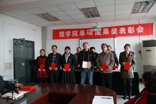 3 月 19 日下午,理学院召开“单项成果奖及特别奖表彰大会”,奖励在2013 年工作中取得突出成绩的个人和集体。院党总支书记杨卫疆主持大会,全体教职工参加。