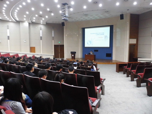 3 月 2 6 日下午,应公共管理学院会展研究所所长杨琪博士的邀请,国家开放大学会展策划与管理专业学科带头人、专业建设负责人、中国会展教育联合会常务理事王晓鸣教授作了题为“我国会展企业核心竞争力分析与品牌化发展战略”的学术报告,公共管理学院硕士研究生、 2011 级会展本科生、 2012 级卓越会展师实验班共 160 余人聆听了此次学术报告。