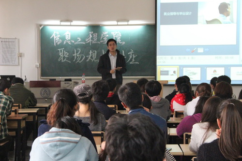 在 IT 行业的发展趋势讲座中,天津市诺思威网络科技有限公司宋涛先生介绍了信息时代对人才综合素质的需求,尤其是信息工程学院学子,今后就业的趋势和方向。他指导同学们要紧密结合自己兴趣爱好,专业特长,广泛学习各方面知识的基础上,要瞄准专业兴趣点下工夫。宋涛先生以某招聘网站的一则网络公司招聘简章为例,分析了当今企业所需人才应具备的基本素质,通过与观众互动形式,告诫同学们企业不需要只会读书却毫无实践能力和创新思维的大学生,企业需要的是专业能力突出,实践能力优秀的综合人才。通过实例分析,引导学生科学制定学业生涯规划,使同学们受益匪浅。活动即将结束时,宋涛先生还为大四学生答疑解惑,为他们拨开职业规划的迷雾,鼓励同学们多了解前沿科技,更新知识结构,扩大专业视野,努力成为企业所需的高科技人才。