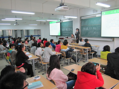 10 月 16 日下午,信息工程学院在 7 号教学楼 202 室举办高校大学生 防骗知识宣传与教育活动。活动就大学生 日常生活中经常遇到的诈骗行为进行了分析,就如何提高安全意识,增强辨别能力开展了专题培训活动。学院辅导员金音老师组织并参加活动。学院勤工助学管理服务中心(以下简称“中心”)全体成员、 2013 级新生各班生活委员及 30 余名学生代表参加了本次培训活动。