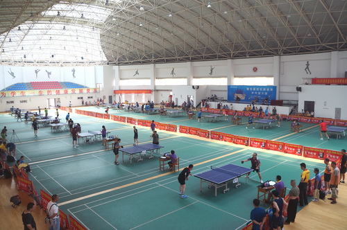 8 月24 日,由安徽皖酒集团主办,精英 ( 银河 ) 天津乒友俱乐部和天津商业大学承办的第五届“百年皖酒”杯乒乓球大赛在我校风雨操场隆重举办。大赛吸引了来自天津的许多家企事业单位和众多天津市乒乓爱好者的广泛参与,100 多支团体参赛队伍上演了激烈的“百团大战”。 本届乒乓球大赛的成功举办,进一步宣扬了“全民健身运动”和“创造快乐生活”大赛理念,也为乒乓球运动的“全民化”发展起到了良好的推动作用。