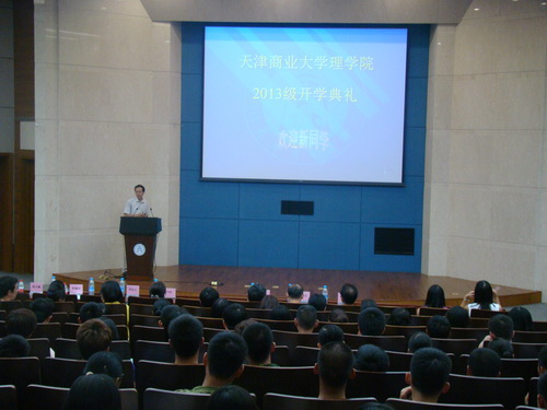 9 月11 日,理学院2013 级新生开学典礼在图书馆三楼国际报告厅举行。理学院党总支书记杨卫疆、院长罗蕴玲、副院长兼统计系主任安建业教授、科研副院长梁新义、党总支副书记梁泽军、数学系主任李乃华、化学系主任巩运兰、物理系主任刘跃,理学院辅导员及各新生班主任参加。开学典礼由党总支副书记梁泽军主持。