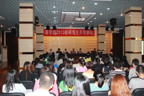 9 月 9 日 ,商学院举办了 2013 级研究生开学典礼。商学院党委书记李新锁、商学院院长寇小萱、研究生部副主任赵建洪、商学院副院长王庆生、商学院党委副书记翟云锋出席了开学典礼。