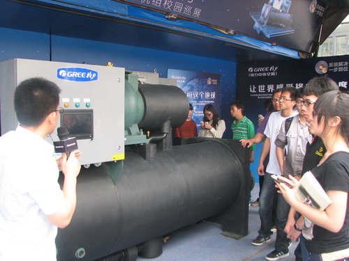 开幕式后,同学们参观了格力全球首台高效直流变频离心机,聆听了专业技术人员的讲解,进行了互动问答。