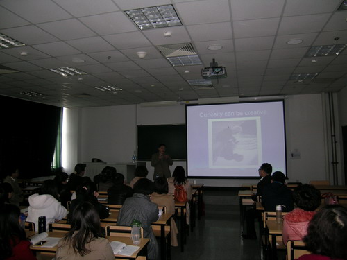 讲座激起了大家的强烈好奇心和探索欲望,随后老师和研究生向张教授请教了许多问题,如“成语与使用语境间是否存在共时性的相互影响”、“成语的组构性解读是否考虑到受试的个体差异”、“成语的组构性高低与其生命力是否相关”等。张教授从认知语言学的角度对这些问题进行了翔实的释疑和点评。张教授语言幽默、思想深刻、方法前沿,特别是用自然科学的实证研究手段研究社会科学,使老师和研究生受到了极大启迪,对学院的科研发展和重点学科的建设都有非常重要的意义。