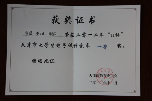 近日,由天津市教委组织的“IT 杯”天津市大学生电子设计竞赛颁奖大会在天津大学隆重召开。我校信息工程学院学生组成的多个参赛小组喜获丰收,其中,由申芳老师指导的崔漾、黄天明、陈有品小组获得本次竞赛的一等奖,同时还获得了两个二等奖和三个三等奖和四个成功参赛奖。天津市大学生电子设计竞赛,每隔一年举办一次,旨在提高天津高校学生针对实际问题进行电子设计制作的能力和创新能力,为转年的大学生电子设计竞赛选拔人才。今年,天津市共有来自 23 所高校的 174 支队伍参加竞赛。