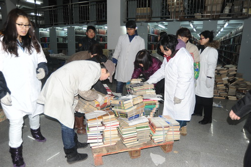 日前,图书馆顺利接收了中科院生物物理所一批赠书。接到中科院生物物理所赠书意向后,馆领导高度重视,向主管校领导请示汇报,并积极联系接洽接收各项事宜。12 月 7日,图书馆党支部书记陈文生、副馆长庞恩旭带领文献建设部采访人员亲临中科院生物物理所洽谈接收,并组织打捆装运。赠书到馆后,图书馆除盯岗人员外,全部出动,顶着凛冽寒风,将赠书搬运至基本书库。