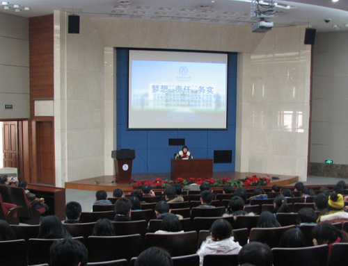12 月 26 日下午,机械工程学院在图书馆国际报告厅举行了以“梦想·责任·务实”为主题的企业家论坛暨卓越论坛,江苏精创电气股份有限公司副董事长、总经理李敏女士应邀担任主讲人,机械工程学院卓越工程师班全体同学以及毕业班同学聆听讲座。