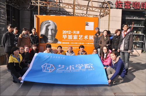 11 月 8 日 下午,艺术学院油画社、墨色书画社、创意手工社等社团的 20 余名同学,前往天津美术学院参观了“2012 天津毕加索艺术展 ” 。 此次展览包含了毕加索一生艺术发展中各时期最具代表性的油画及版画作 品—— 法国国立毕加索博物馆的授权限量复制品 55 幅,全方位地呈现出毕加索艺术作品的整体脉络。