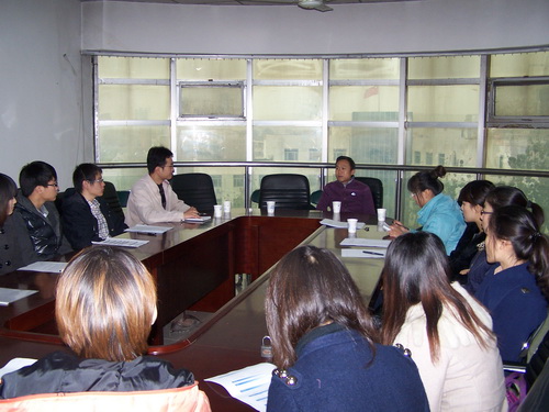 11 月 23 日上午,天津国际会议展览商会会长、公共管理学院客座教授齐世宏来我校招聘会展专业毕业生,公共管理学院党委书记白洪文、会展经济与管理系主任杨琪等接见了齐会长,会展专业 09 级毕业生和部分研究生参加了此次招聘会。