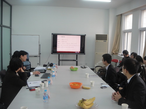 11 月 22 日上午,金融衍生品研究院举行 2012 级金融衍生品方向研究生项目班校外导师见面会,邀请招商证券天津营业部金旭总经理、招商证券天津营业部人力资源部经理杨向军女士与广大师生见面。会上,学生通过用自己制作的简历视频向校外导师展示了自身的风采。天津商业大学金融衍生品研究院执行院长白玲教授等出席了见面会。