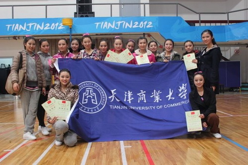 11 月 17 日和 18 日,全国啦啦操联赛 ( 天津站 ) 暨天津市大中小学啦啦操大赛在天津科技大学体育馆举行,我校健美操队 16 位队员同心协力,出色的表演赢得了评委的一致肯定,最终取得高校团体第二名的优异成绩。另外,健美操队裴珊同学参加了单人全国啦啦之星选拔赛进入前 20 强,获得了“全国啦啦赛区之星 ( 天津站 ) ”荣誉称号。
