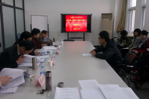 11 月 27 日 下午,金融衍生品研究院在经济研究所二楼会议室举行了 2011 级“期货专业研究报告”开题报告会。研究生部主任张立毅教授,经济研究所执行所长白玲教授、副所长王树春教授,经济学院王中华教授、邵永同博士出席开题报告会。