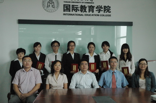 9 月 27 日 ,国际教育学院举行 2012 全国高校职校银行技能实训大赛优秀指导教师和获奖学生颁奖仪式,大赛承办方代表深圳市国泰安信息技术有限公司于雄经理、国际教育学院副院长齐萱出席颁奖仪式。在 2012 全国高校职校银行技能实训大赛(华北地区)比赛中,我校取得了优异成绩,被授予“中国金融实践教育示范院校”,国际教育学院胡阳、韩婧老师获得优秀指导教师奖,国际教育学院由罗文同学、罗威同学、朱佳同学组成的第三队和由刘婳婷同学、宋民杰同学、吕星仪同学组成的第一队分获区域赛冠亚军,经济学院王小昕同学获得金融个人奖项幸运奖。