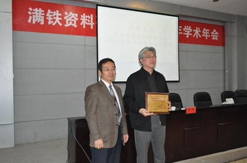 10 月26 日,中国近现代史史料学学会满铁资料研究分会 2012 年会在北京交通大学图书馆召开。为促进满铁资料开发与研究工作,此次年会决定成立首个地区工作组,天津地区工作组由南开大学图书馆、社科院图书馆、天津图书馆和天津商业大学图书馆共同组成。图书馆馆长苑春鸣代表天津地区工作组接受了牌标。