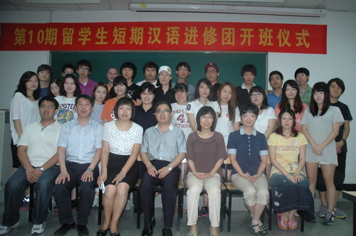 暑期将至,国际教育学院迎来了来自韩国、日本、泰国等国家的第十期留学生汉语言进修团。 7 月 9 日上午 ,国际教育学院在国际教育交流中心举行了简短而又热烈的开班典礼,国际教育学院院长田海龙教授、此次进修团的授课教师参加了开班典礼。在开班典礼仪式上,田院长对本期学员来到我校学习表示欢迎,并向学员们介绍了学校及学院概况,最后对学员们的学习寄予了期望。国际教育学院汉语教研室主任郭雪玲老师在发言中希望学员们在管理好个人生活的同时好好学习,通过暑期进修班的学习巩固汉语言基础。随后留学生代表用流利的汉语进行了精彩发言。最后,全体师生合影留念。