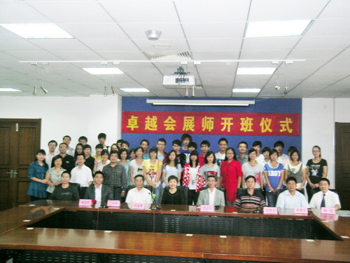 外国学院党总支书记张淑敏在讲话中对第一届卓越会展师实验班的同学们表示衷心祝贺,并希望同学们在日后的学习和生活中要秉承校训,以积极的态度,踏实的学风,执着的信念,坚强的意志成为一名优秀的天商人和出色的会展人。