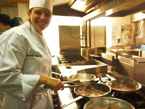 此次西餐晚宴是高级食品生产管理课程的重要实践环节,该课程融合了 食品生产、餐饮管理、服务学、收益管理、营销学、消费者行为学于一身的综合性实验课,是 通过对外开放西餐厅来完成的。学生在教师指导下, 从菜单设计、西餐制作、市场营销、餐饮服务、现场管理和成本控制等各环节得到对餐厅进行经营和管理,并通过角色轮换,使学生在各环节受到严格训练,职业能力和职业素质大幅度提升,为今后就业打下坚实的基础。