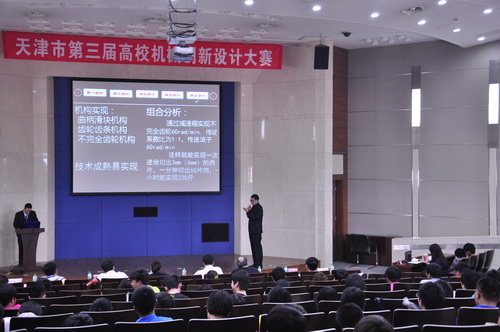 5月19 日,以“包装创意 实用生活”为主题的天津市高校机械创新设计大赛决赛在我校图书馆国际报告厅举行。天津城建学院张玲莉老师、机械工程学院副院长杨传民教授、党委副书记刘振强老师及相关专业老师出席大赛。