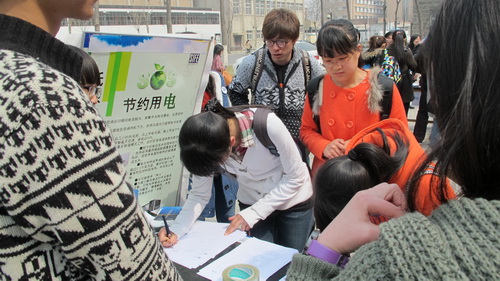 除此之外,利用校内社团纳新的机会,后勤管理处向同学们广泛宣传了节能减排相关知识,从而提高了大家节能减排的意识。