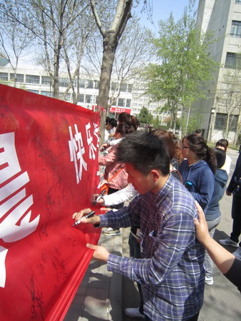 学期初,我院制定下发了关于规范学生课外活动,加强学风建设的通知。此次院学生会精心组织的晨读活动作为我院学风建设月的重要组成部分,得到了广大同学的积极响应,现场同学们踊跃签名,都争先加入到活动当中。