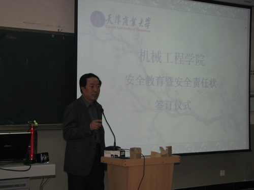 4 月18 日,机械工程学院在阶三举行了安全教育暨安全责任状签订仪式。以学院党委书记李勤国、院长申江为首的领导班子成员、全院教职工及全体研究生参加了本次会议,副院长杨传民主持了签订仪式。