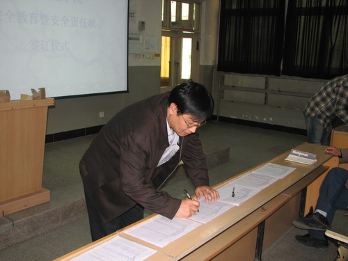 会上,全体院领导班子成员、正高级职称教师、系主任、教研室主任分别签署了责任状,在《机械工程学院资源安全使用责任管理制度》上签字,切实负起所在办公室、实验室的消防安全责任。