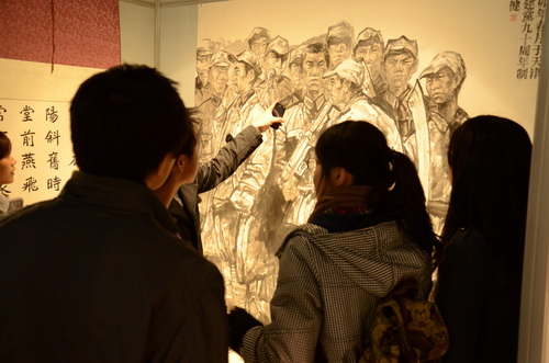 11 月 12 日 ,艺术学院团委组织全体 2011 级新生参观了我院“庆祝中国共产党成立九十周年师生书画展”。