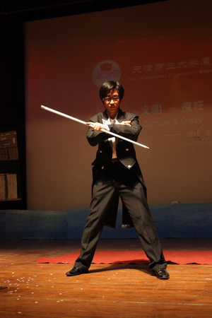 伴着激昂的歌声,来自天津科技大学的午夜阳光乐队闪亮登场, 点燃了在场观众的激情。 在 2010 年天津市文艺展演中获得一等奖的中国民航大学小合唱团体带来了改编版的《 Baby 》,优美的旋律、完美的和声、默契的配合赢得了全场观众的掌声。天津音乐学院的同学带来歌曲串烧,时而欢快,时而深情,带给观众多种感受。我校“校园十大歌手比赛”的冠军张立群以他当初的参赛曲目《痴心绝对》再次感染在场观众,让大家一饱耳福。来自我校魔术协会的精彩表演 《文明与疯狂》成为全场亮点, 魔术师精湛的技术 让观众不时惊呼叫好。 舞蹈《花蝴蝶》跳得妩媚唯美,将现场气氛推向另一个高潮。最后,晚会在我校街舞社团 918 Disco Club 的精彩表演《 Final Fantasy 》中落下帷幕。