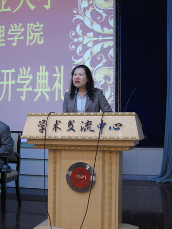 典礼在激情澎湃的校歌中拉开帷幕。首先,院党委书记白洪文发表热情洋溢的讲话,代表全院师生向同学致欢迎词,教师代表王雪丽老师就“如何度过大学生活”这一内容进行发言。行政管理 0904 班马月代表在校生发言,与新同学分享大学感悟的同时提出诸多建议,公共管理类 1110 班杨武鹏代表新同学表达了对新学校、新生活的美好期待与希望。最后,孙钰院长发表学院讲话,对学院各专业及就业前景,特别是专业差异性优势作出了详尽介绍,并寄语新同学,鼓励他们加强道德修养,努力学习,不辜负家长的期望,勇于创新,以骄人的业绩为学校(院)争光,成为社会有用之才。