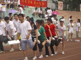 在法学院党总支书记邢晓辉宣布运动会正式开始后,法学院第三届毕业生趣味运动会正式拉开了帷幕。本次比赛主要采用趣味竞赛的比赛形式 , 如夹球往返跑、单脚火车跑、猪八戒背媳妇等项目的比赛 , 各年级同学踊跃参与到各项比赛中。