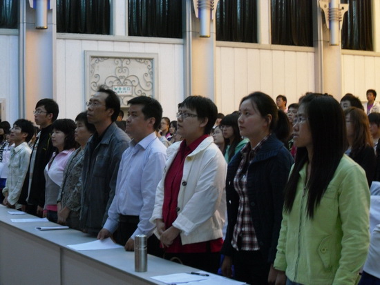 开幕式在雄壮的国际歌声中结束。随后,孙文利老师“加强高校学生干部队伍的学习型组织建设”为题,为党校、团校学员开设了培训第一讲。