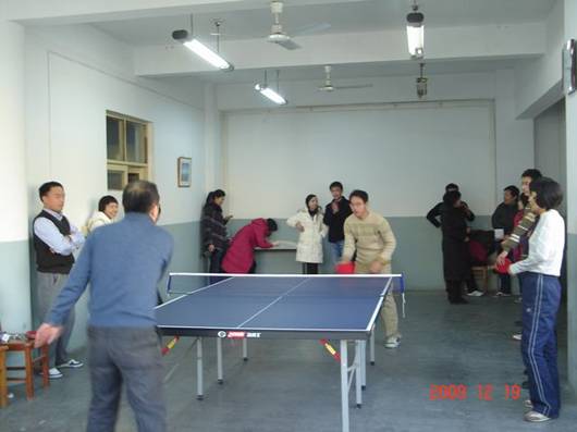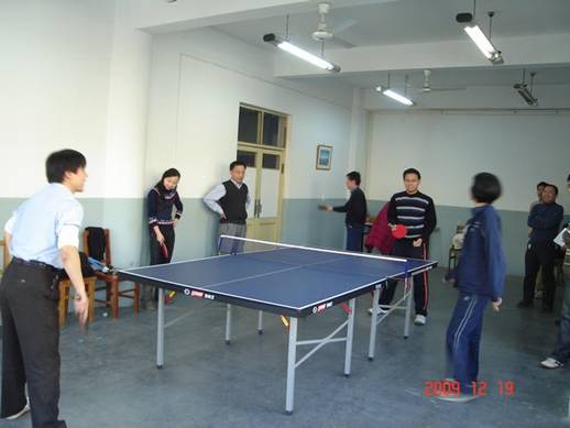 12 月 18 日 下午,由研究生部与研究生会组织的师生乒乓球友谊赛在研究生部多功能活动室开赛。在体育文化节乒乓球比赛中取得优异成绩的张晨辉、刘健东、黄耀坤、欧阳君、周开方组成学生代表队与教师代表队进行友谊赛。生物技术与食品科学学院副院长王素英教授、法学院张春普副教授、公共管理学院老师史永胜、王元明,研究生部老师赵建洪、刘泽勤、董运平、贾永强,组成教师代表队参赛。这场比赛是继去年之后举办的第二场师生乒乓球友谊赛,旨在加强师生交流,增进师生友谊,共同促进,以健康的体魄从事学习与工作。比赛在欢声笑语中开始,在欢声笑语中结束。比赛结果在此忽略,双方收获的不是比分,而是师生共同的快乐!
