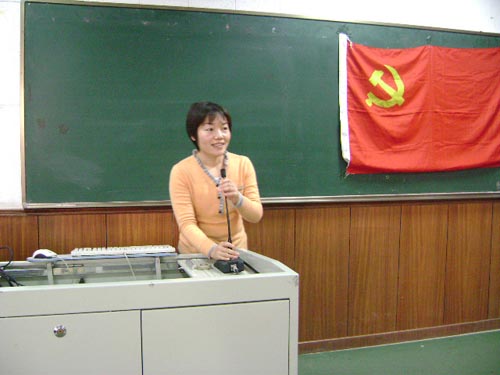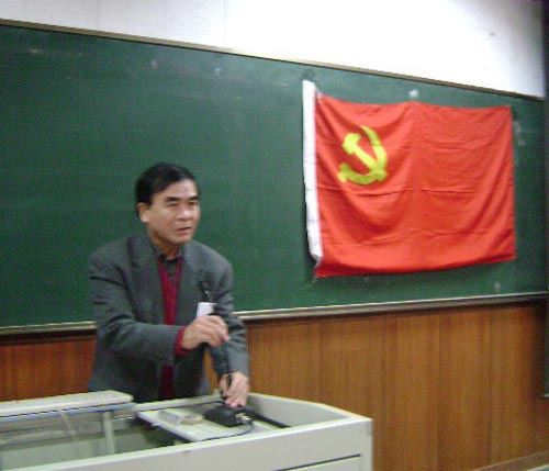 最后,组织员张宗安老师代表上级党组织讲话, 他回忆起四十年前自己面向党旗宣誓的情景时,激动万分,并与大家分享了他为党工作的经验 ,用自己丰富的实践经历教育全体党员要端正入党动机,摒弃为一己私欲申请入党的狭隘观念,告诫已入党同志 要时刻不忘在党旗前的庄严承诺,牢记责任,为党勤奋工作,为人民谋福利,为国家建设贡献力量。