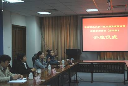 开班仪式上,我校经济学院书记白玲教授向 41 位经过严格考核筛选录取的金融学期货班(第三期)的同学表示祝贺,并对同学们今后的学习生活提出了殷切期望。随后,光大期货公司谭笛苗副总经理以“我国期货市场与期货公司发展概况”为题为金融学期货班同学作了一场精彩的报告。