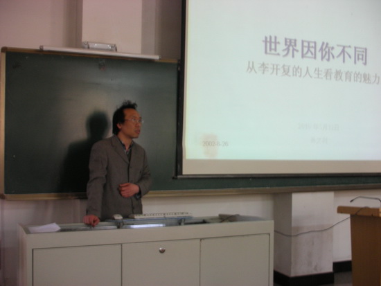 孙文利副书记以《世界因你而不同》一书中李开复的人生经历传奇为主线,与大家分享了自己的心得和领悟——每一次人生选择,都是一次自我超越。他希望同学们要拥有分析与思考的能力,同时要不断地提高自己、相信自己,发挥自己的优点,寻找自己在世界中的不同,这样世界也会因我们而精彩。针对本学期在全院基层班团组织中开展的班级建设评估工作和建设学习型组织实践活动作了安排。随后,他传达了将在我校成立 30 周年校庆期间开展的几项工作通知并强调了相关要求,重点阐释了我校校训的深刻涵义。还通过带领大家学唱我校校歌,激发同学们强烈的爱校情怀。