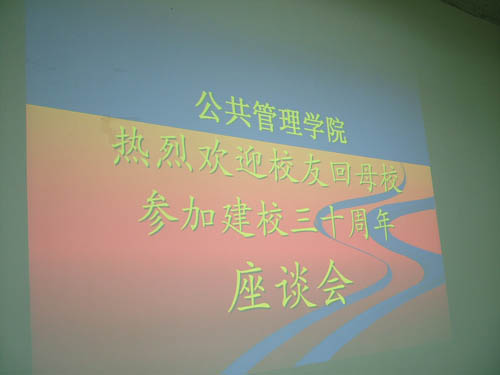 5 月 7 日 下午 2 : 00 ,公共管理学院在学院六楼会议室召开校庆 30 周年校友座谈会,学院领导、部分教师和回母校参加校庆的校友参加了座谈会。座谈会由学院党总支书记郑治中主持。