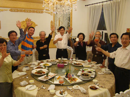 入夜,学院领导设便宴招待出席校庆活动的校友和德高望重的老教授,信息工程学院前党总支书记、现任天津商业大学校友联谊会秘书长张宗安老师也出席了宴会,大家畅谈学校发展的昨天、今天与明天,满怀信心地相约,校庆五十周年的时候再次相聚。