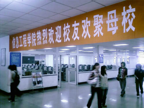 在庆祝商大建校30周年华诞欢庆的时日,校园内到处呈现一派喜庆祥和欢乐氛围。信息工程学院也迎来了从祖国四面八方或海外归来的校友,他们与母校师生一起喜迎校庆。在信息学院三楼中厅,一幅上书“信息工程学院热烈欢迎校友欢聚母校”的鲜艳横幅,表达了学院对来访校友的款款深情。