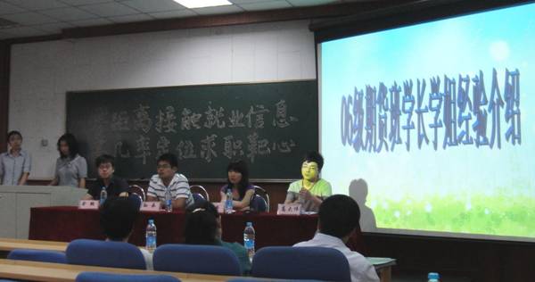 日前,我校经济学院光大期货班已成功招生三届,培养的首届毕业生与光大期货有限公司较高的签约率受到越来越多的关注。为了使光大期货班 07 级、 08 级的同学进一步了解就业信息,坚定投身期货行业信念, 5 月 27 日下午光大期货班特邀请已被光大期货有限公司录用的四名 06 级同学于教学楼 3-110 教室举行了以“ 零距离接触就业信息 高几率定位求职靶心”为主题的经验交流会 。 经济学院刘小军院长、党总支肖培荣书记、经济研究所所长白玲教授、金融系主任王常柏教授以及期货班班主任和辅导员与光大期货班近一百人参加了交流会。