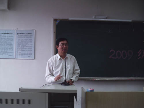 9月7日上午8 点半,理学院2009 级新生开学典礼在教学楼 4-301 室隆重举行。 理学院党总支书记刘振航教授、院长马书林教授、副院长罗蕴玲教授、各系主任、辅导员老师和新生班主任及 2009 级全体新生参加了本次大会。