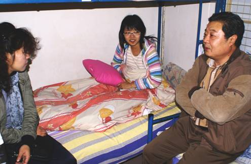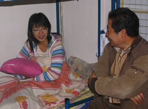 王院长前往宿舍看望,并亲手送给尹丽同学画册