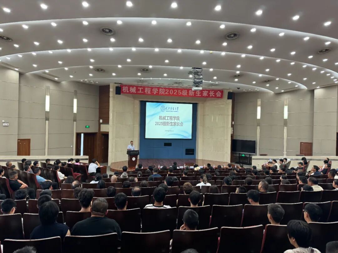 9月8日上午,机械工程学院在图书馆国际报告厅召开2025级新生家长会。学院党委书记张莹,院长刘圣春,党委副书记王凯,副院长刘冰、陈爱强出席会议,各专业系主任、新生辅导员及部分新生和家长参加。