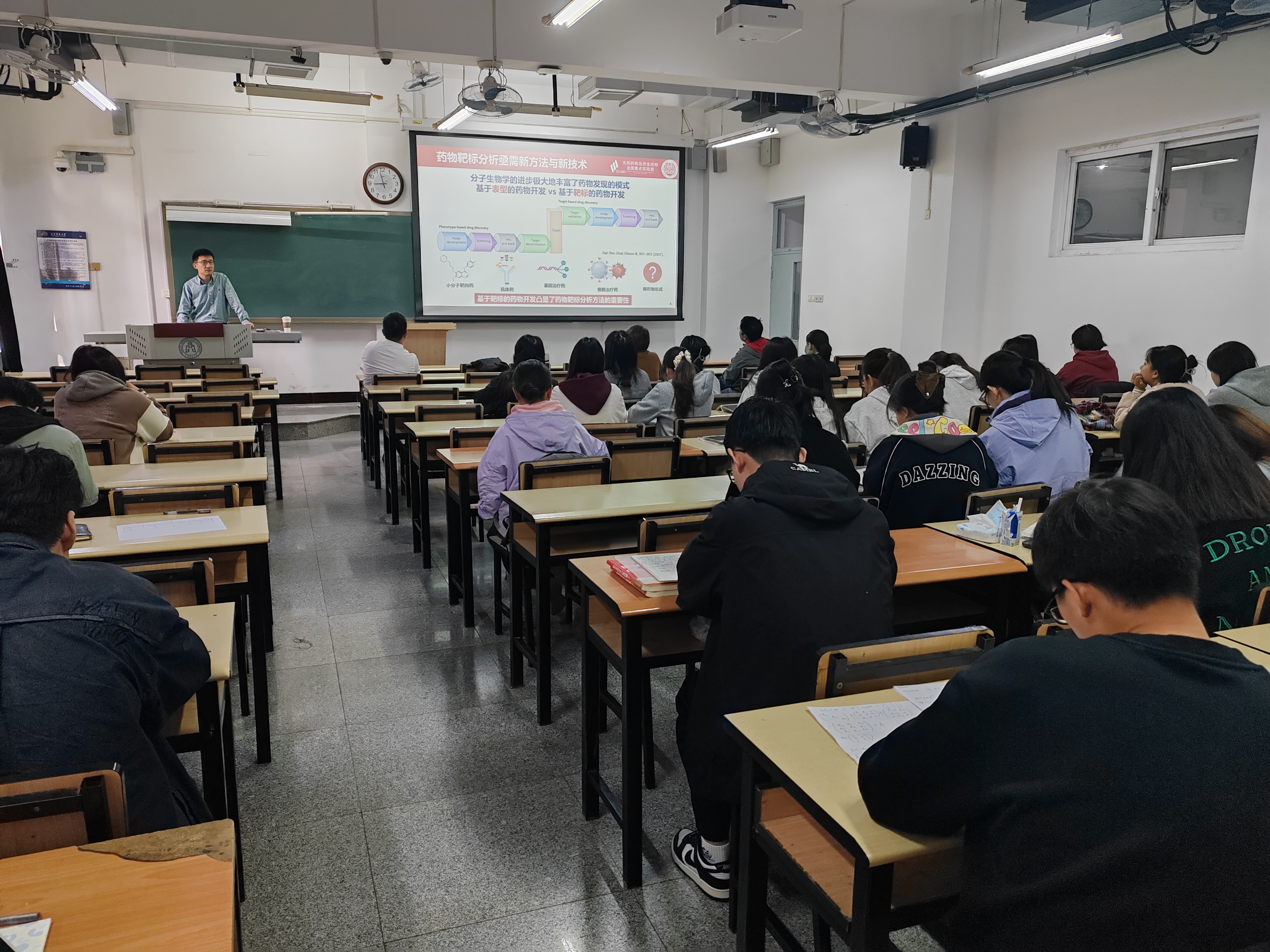 本次活动是研究院推动“科研反哺教学”、深化本科教学改革的重要举措。讲座主题“靶标分析核酸适体分子进化”与《药物分析》课程中“药物分析新技术与新方法”章节内容高度契合。张力勤教授以近期创新成果为案例,生动阐述了功能核酸适体从基础研究到药物筛选、疾病诊疗的全过程应用,将抽象的理论知识转化为具体的科研实践,展现了前沿科技融入课堂教学的实效。