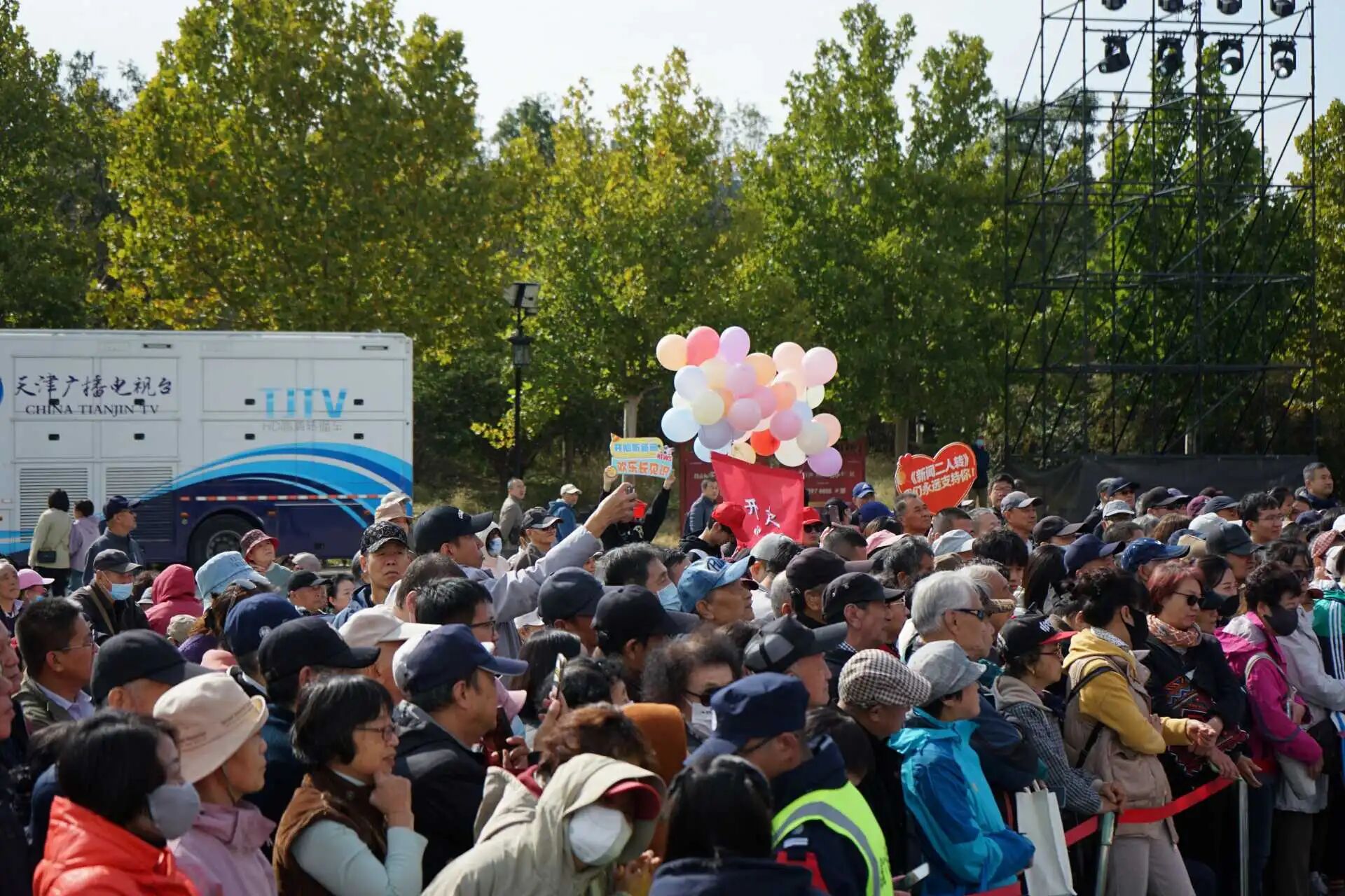 10月18日,2025天津融媒体粉丝节在水西公园盛大开幕。机械工程学院卓热班工匠班学生党支部组织 37 名学生党员和入党积极分子来到水西公园助力粉丝节顺利举行,开展“爱老助老,情暖人心”志愿服务活动,为《新闻二人转》的老年粉丝们带来温暖与关怀。