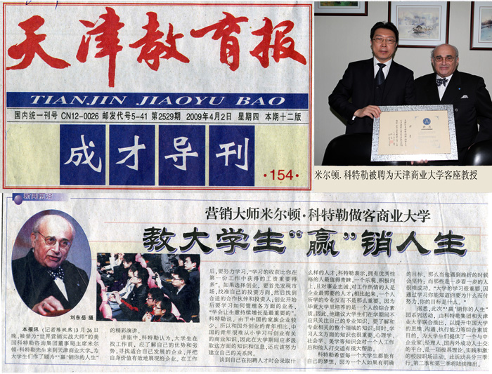 《天津教育报》报道“营销大师米尔顿·科特勒做客商业大学 教大学生'赢'销人生”