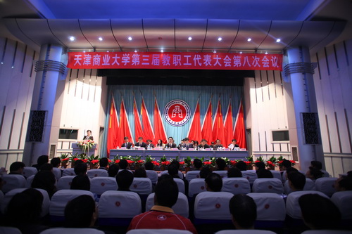 4月8日下午,我校隆重召开第三届八次教职工代表大会。校领导陈学奇、刘书瀚、杨万义、史习红、魏胤亭、马三津、杨明书和教代会主席团全体成员在大会主席台就座。174 名正式代表及全体副高级及其以上专业技术人员,科级及其以上党政干部,工会各分会主席,各民主党派负责人,市、区人大代表、政协委员,离退休老同志代表 400 多人参加了大会。校党委副书记史习红主持。